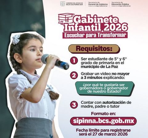 Amplían convocatoria del Gabinete Infantil 2026: SIPINNA BCS.
