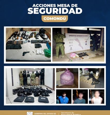 Más tarde, en otra acción operativa realizada en la zona centro de Ciudad Constitución, se logró el aseguramiento de 02 armas largas, 10 cargadores calibre 7.623 x39 mm, 03 bolsas de regular tamaño conteniendo al parecer droga cristal y una bolsa conteniendo diversas dosis de la misma sustancia ilícita.
