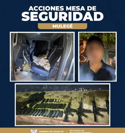 Aseguran armas, cargadores y equipo táctico durante acción operativa en Mulegé.