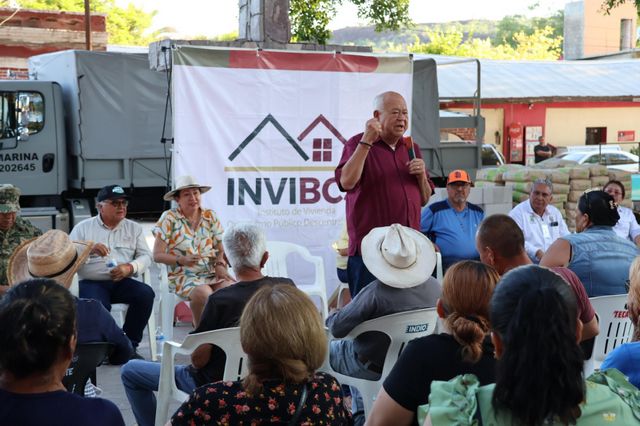 Entrega gobernador Víctor Castro paquetes de materiales a familias afectadas por lluvias en San Ignacio.