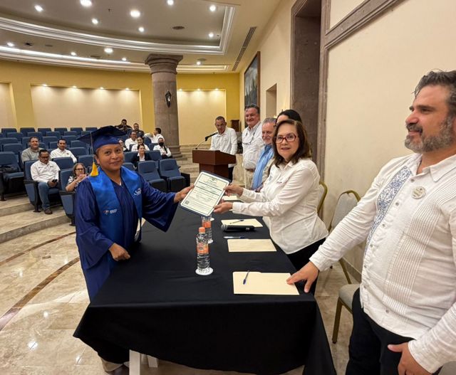 Durante un evento realizado en el Hotel Solmar, la directora general del IEEA, Diana Victoria VonBorstel Luna, acompañó a las y los beneficiarios en este logro académico, en el que se otorgaron 14 certificados: 4 de nivel primaria y 10 de secundaria a trabajadores de este centro laboral.