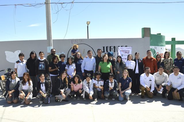 Asimismo, estudiantes del plantel participaron en la pinta del mural “El Balón de la Paz”, símbolo que representa el compromiso de la comunidad escolar con la convivencia pacífica, el respeto y la unidad.